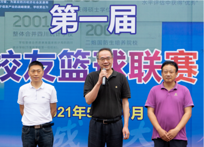 上午9:30,在首届校友篮球联赛开幕式上,校长余敏明致开幕辞,他代表学校党政领导班子和全体师生员工对返校参加球赛的校友们表示热烈欢迎,希望通过相关赛事活动,增进广大校友和学校之间的联系,创造更多的合作共赢机会。他预祝活动取得圆满成功,并希望所有参赛选手都能够团结协作、赛出水平、赛出友谊,展现成信人的体育拼搏精神和热血青春风采。