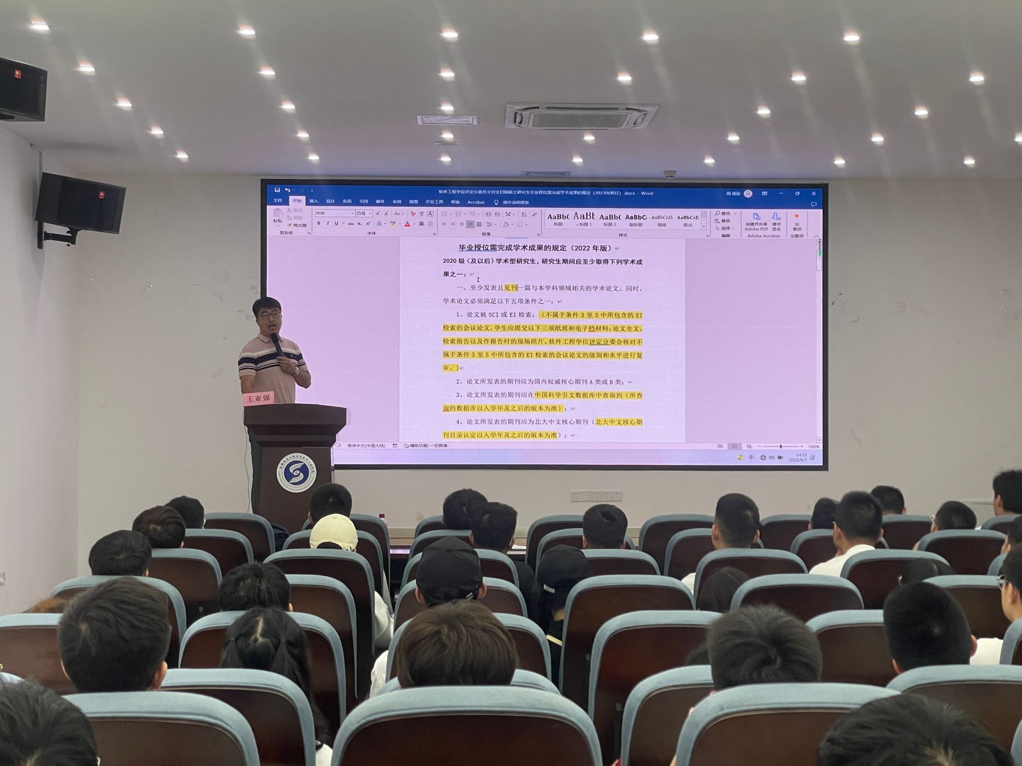 为帮助研究生新生尽快适应研究生生活,2023年9月6日-7日,我院在信达楼举行2023级新生专业教育会。数据科学与工程系主任王亚强和气象空间信息工程系主任何磊,辅导员万娟及2023级软件工程学院全体研究生新生参加会议。