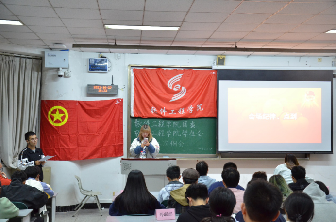 为更好的统筹学生管理工作,促进新学期各项工作尽快步入正轨,成都信息工程大学软件工程学院团委、学生会于2021年10月27日,在航空港校区4112教室召开了本学期第二次例会。团委书记胡培老师,团委副书记张澄老师,软件工程学院团委、学生会全体成员参与了本次例会。