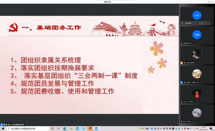 本次培训共10个学时,主要围绕中国共青团的相关纪律、知识与工作、团学干部的职责、学习习近平总书记重要讲话精神、学习两会精神、三会两制一课讲解、建党100周年以及建校70周年等主题开展。培训过程中,由院团委书记胡培、院团委副书记张澄以及院学生会主席团成员进行授课讲解。本次培训主要以讲座形式开展,授课形式生动,授课内容多样,引导青年学生加深对国家、党政、共青团的理解与认识,进一步树立远大崇高的目标与理想。
