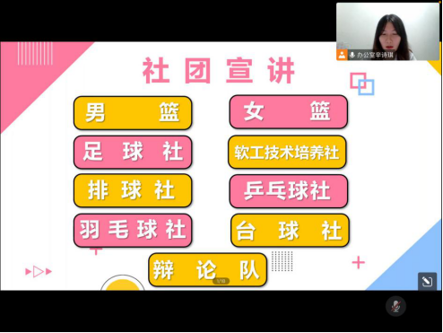 2022年9月16日晚19:00,软件工程学院团委、软件工程学院学生会以及软件工程学院社团于腾讯会议面向2022级新生进行线上招新宣讲会。软件工程学院团委书记胡培老师以及团委副书记张澄老师均参加了本次宣讲会。