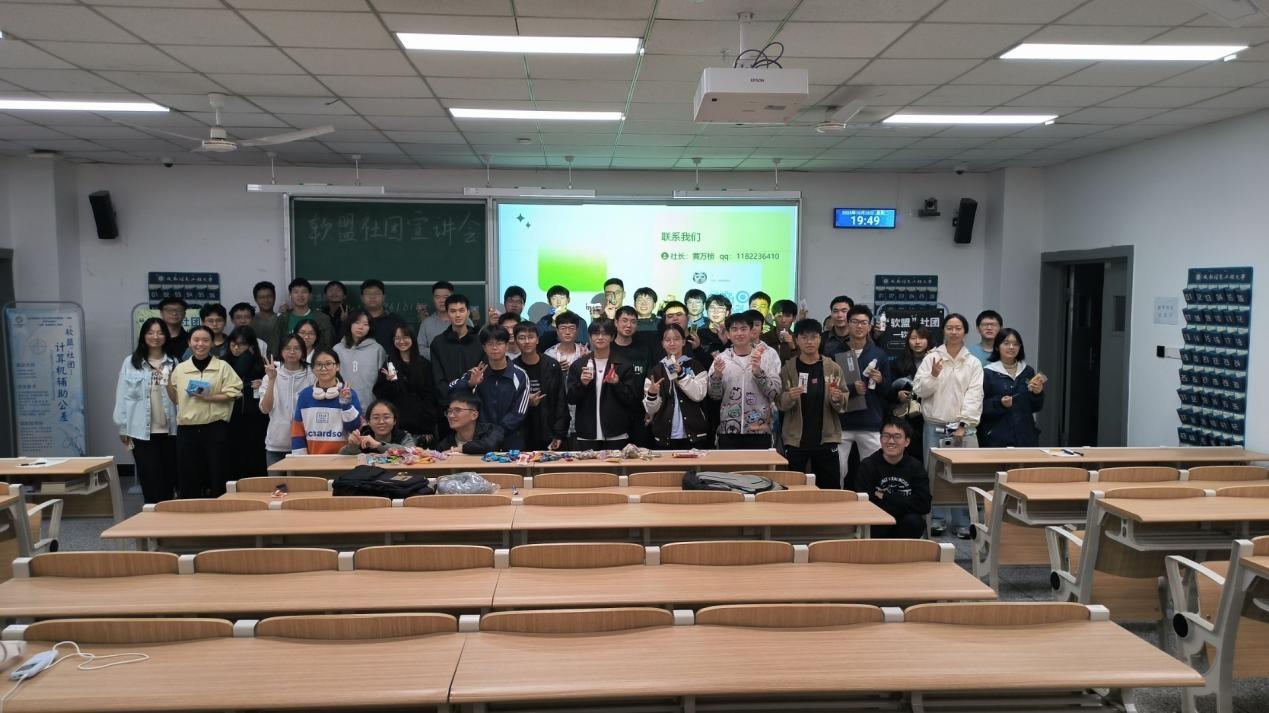 2025年10月28日晚,软件工程学院“软盟”社团在1201教室召开招新宣讲会,社长黄万桢主持会议,指导老师王伟业和学院怀揣技术梦想的同学参会。