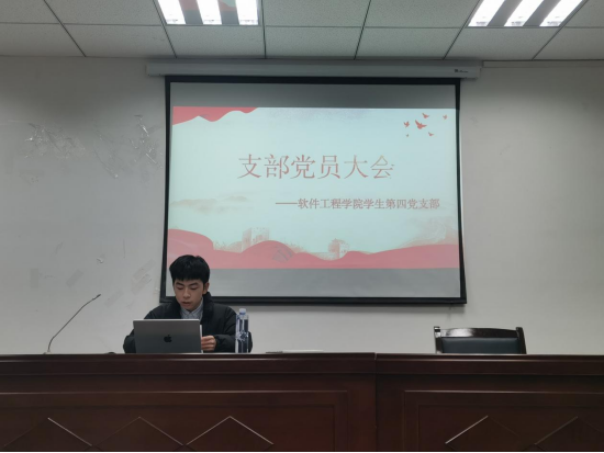 12月24日,学院学生第四党支部在信达楼A502召开全体党员大会,会议由支部副书记吴浩斌主持,学生第四党支部全体党员参加会议。