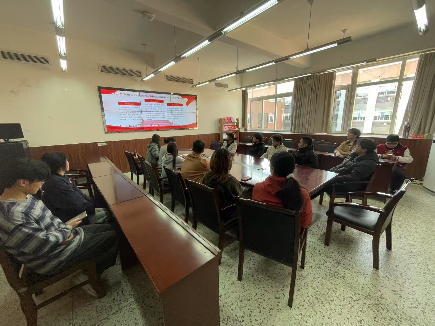 随后,支部党员王思越同学带领全体党员围绕中央八项规定的内容进行了系统学习。在学习过程中,党员们深刻认识到中央八项规定的核心要义在于密切党同人民群众的血肉联系。为了加深党员们对中央八项规定的理解,支部还结合实际案例进行了深入剖析。通过分析一些违反中央八项规定的典型案例,党员们直观地看到了违反规定所带来的严重后果。