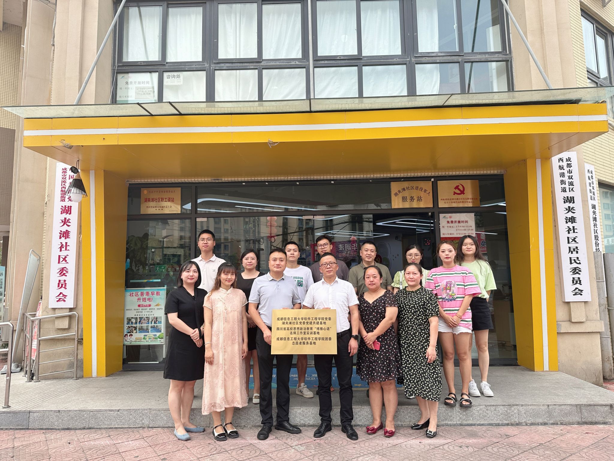 为增强学生服务人民的担当意识,促进其全面协调发展。9月7日,我院在双流区湖夹滩社区举行互联共建挂牌仪式,湖夹滩社区党委书记王华、社区两委成员、学院党委副书记童强、学院学生科科长万娟,辅导员代表张澄、齐文琴参加。