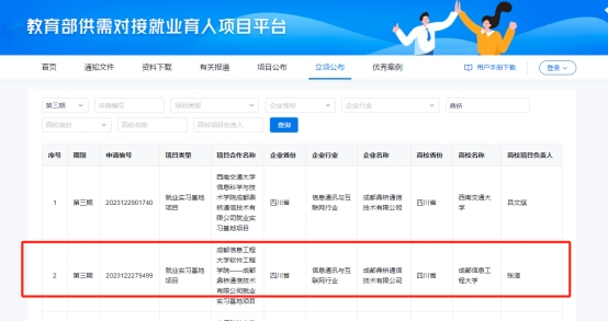 6月14日,全国普通高校毕业生就业创业指导委员会教育部高校学生司发布《关于公布教育部第三期供需对接就业育人项目立项名单的通知》(教就业司函〔2024〕23号),我院和相关企业联合申报的4个项目获批立项,其中定向人才培养培训项目1项、就业实习基地项目3项。