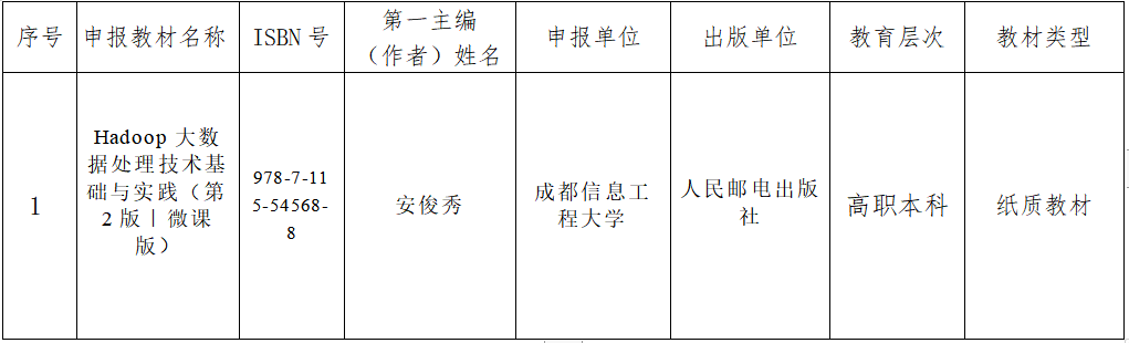 经专家评审、资格审查、学院党政联席会讨论等审核环节后,特推荐以下教材参加“十四五”首批职业教育国家规划教材评审,公示时间为:2021年12月16日至12月20日。公示期间若有疑问请联系软件工程学院教务科:85966923。