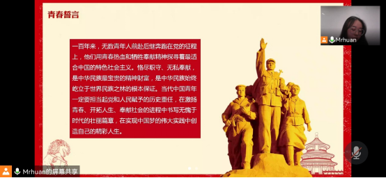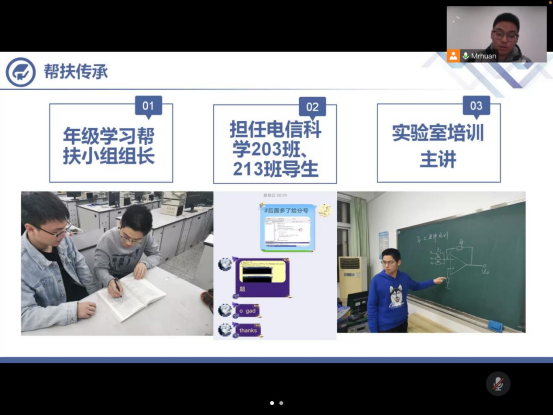 通过线上观看了报告会。报告会采用线上视频交流的形式进行,由网络空间安全学院信息安全183班何俊湫、电子工程学院电信科学191班黄熠昕、软件工程学院软工186班李毅3名优秀党员学生代表向大家介绍自己的入党历程和励志前行奋发有为的感人事迹。