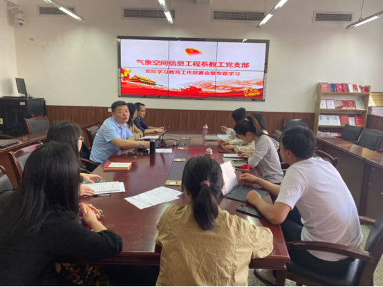 4月19日上午,气象空间信息工程系教工党支部在信达楼B505室开展党纪学习教育工作部署会暨专题学习,会议由支部书记何磊主持。