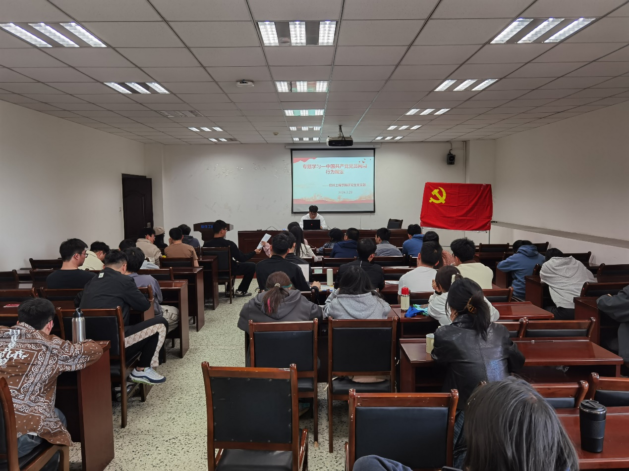 2024年3月28日下午,我院研究生党支部在双中心A502教室进行中国共产党纪律处分条例的专题学习。本次学习仁和同志主持,带领支部全体在校党员学习。