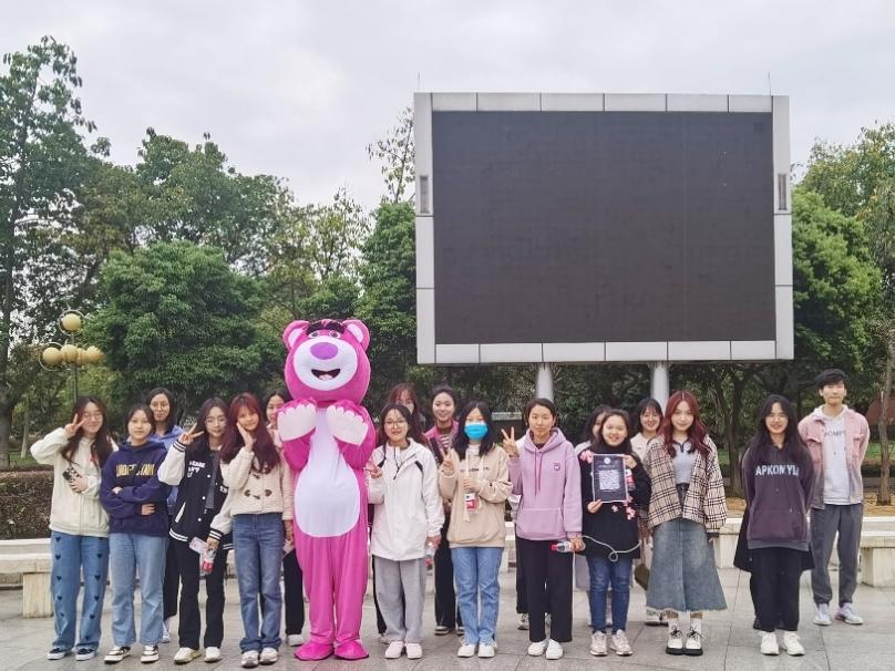 2023年3月24日,我院“博雅心语”名辅导员工作室主办的“草莓熊FreeHug抱抱校园行”活动在成都信息工程大学龙泉校区正式开展。通过发扬“自由拥抱”这项活动,旨在鼓励同学们用拥抱赶走失意,治愈内心,充实勇气。志愿者身着“草莓熊”玩偶服,模仿草莓熊古怪、可爱、俏皮的动作吸引同学们主动拥抱。同学们天真无邪的笑脸与可爱的草莓熊构成的温馨画面,治愈了在场的每个人。本次活动奖品十分丰富,活动现场气氛十分温馨活跃,同学们的一张张可爱的笑脸宣告着此次活动取得圆满成功。