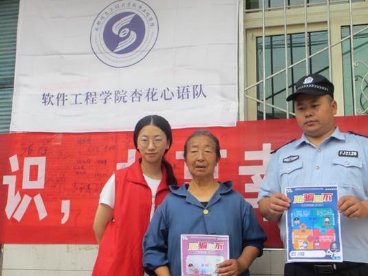 专业引领,构筑诈骗“防火墙”。基于永盛镇的特殊地理位置等原因,当地电信诈骗案件频发,实践队成员结合自身专业特色,举办了以“防诈于心,智能生活”为主题的宣传科普活动。