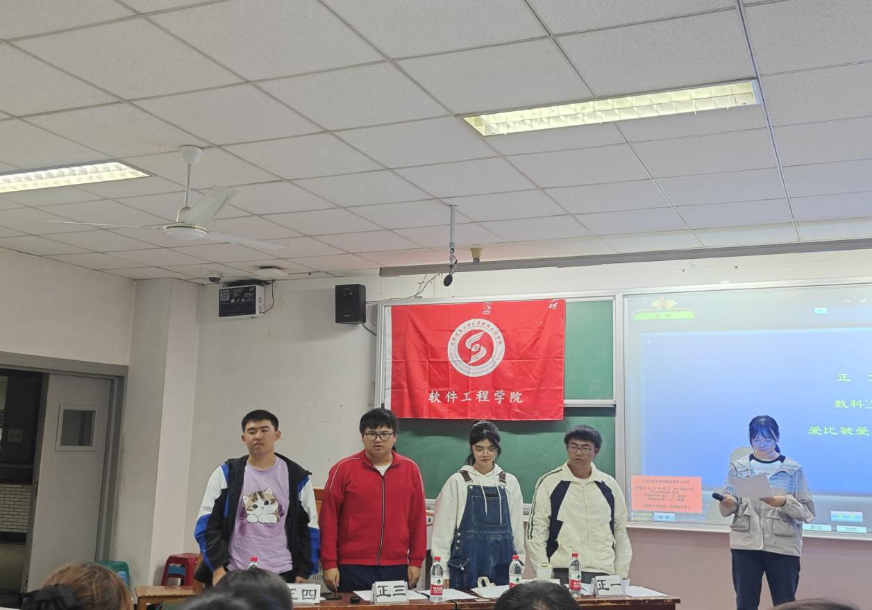 为提升学生们的思辨力与创造力,丰富大学课外生活,软件工程学院新生杯辩论赛决赛于2023年10月25日晚19:30在H1202教室举行。我院团委书记、2022级辅导员胡培老师,2023级辅导员陈绍华老师、张俊锋老师,学生会主席陈耿伟以及院辩论队三位队长担任本次比赛评委。