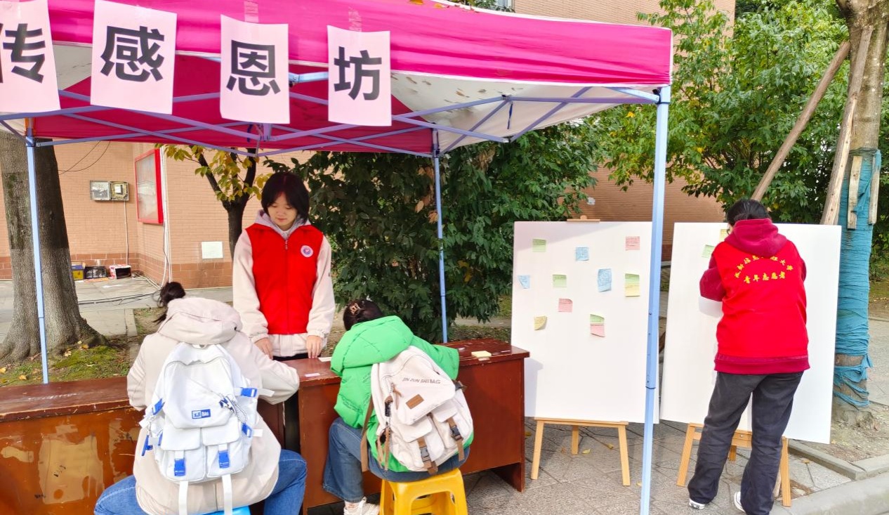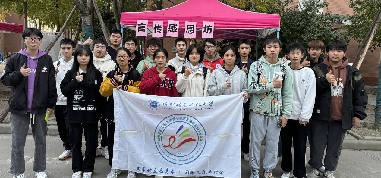 心怀感恩,所遇皆美好。为进一步加强学生思想道德教育,培育良好道德风尚,引导学生感恩于心,感恩于行,11月22日,成都信息工程大学软件工程学院青志协在银杏大道开展:“言传感恩坊”活动。