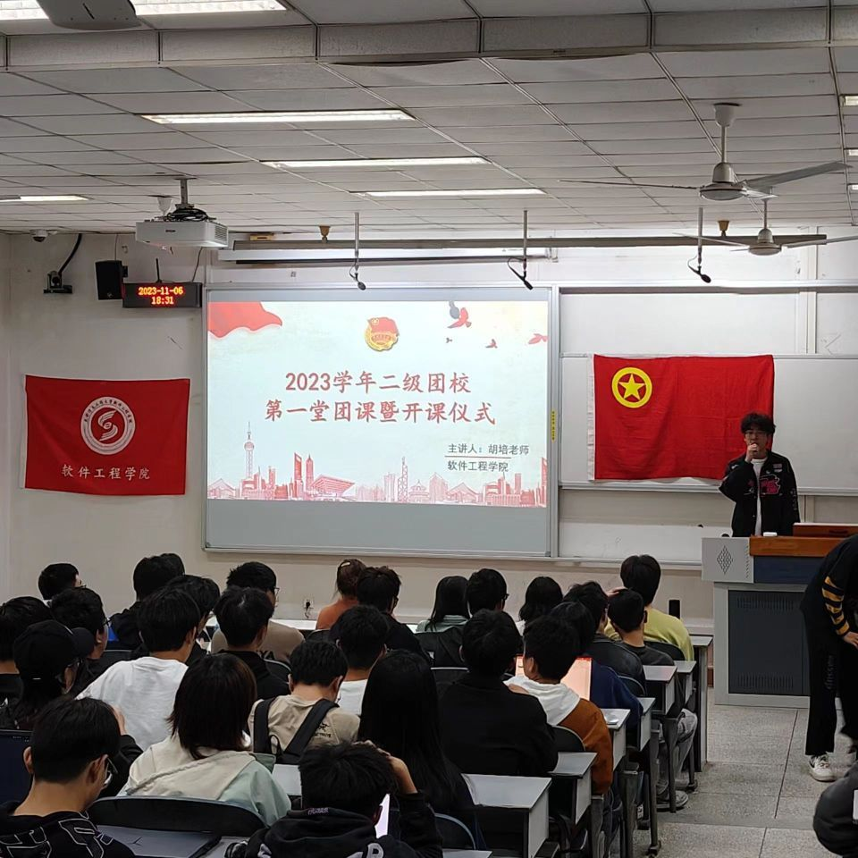 为提高软件工程学院团员青年的思想政治素养、理论水平及业务技能,2023年11月6日晚6点半,我院于H1101教室组织开展了二级团校第一堂团课暨开课仪式。软件工程学院团委书记胡培老师以“深入学习贯彻团章,严格遵守团章”为主题讲授第一课。我院团委、学生会组织部干部及各级入团积极分子参与本次开课仪式。