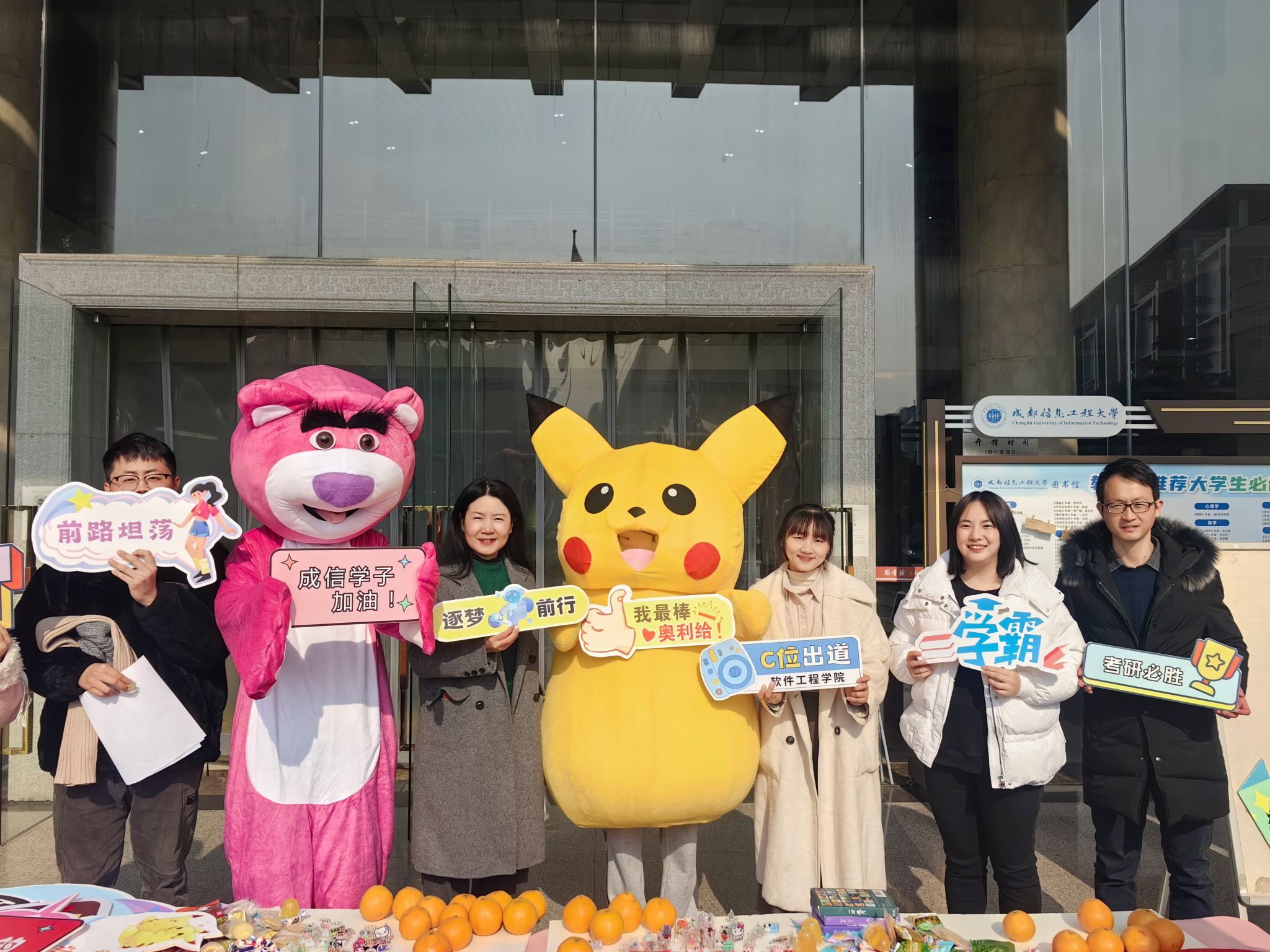 12月19日,我院“博雅心语”名辅导员工作室、团委在图书馆门口举办了“考研抱抱”活动。现场有可可爱爱草莓熊和皮卡丘,有寓意“大吉大利”的桔子,有写上祝福话语的明信片,有可以写下心愿的横幅...
