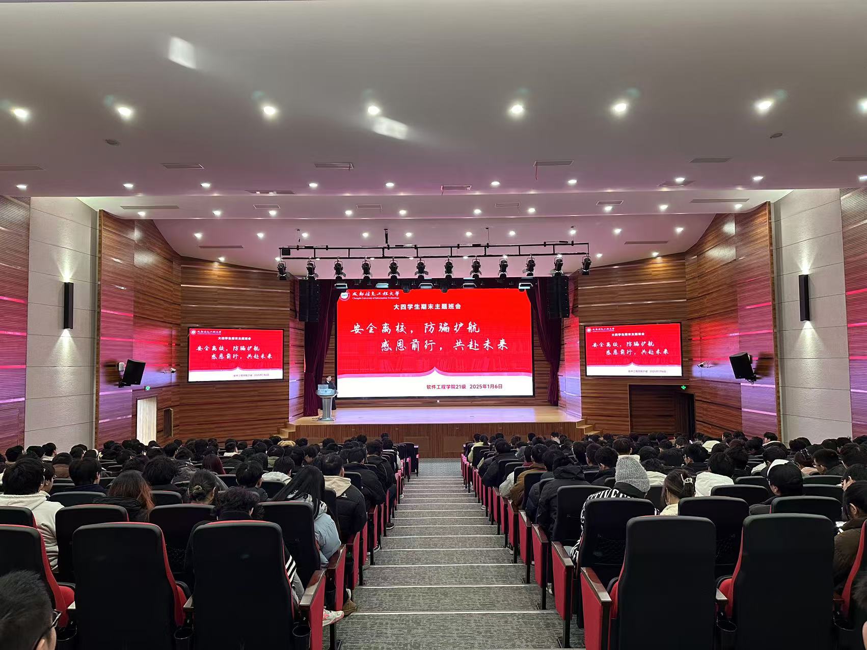 重点强调了寒假期间的安全问题,提醒同学们要注意人身安全、财产安全,特别是要防范各种诈骗行为,并详细讲解了防诈骗知识,帮助同学们提高警惕,增强自我保护意识。邵老师引导同学们回顾大学期间给予自己帮助和支持的人,包括老师、同学、家人等,鼓励大家要常怀感恩之心,珍惜每一份情谊。万娟做总结发言,寄语毕业班学生带着这份感恩与收获,勇往直前,开创属于自己的美好未来。