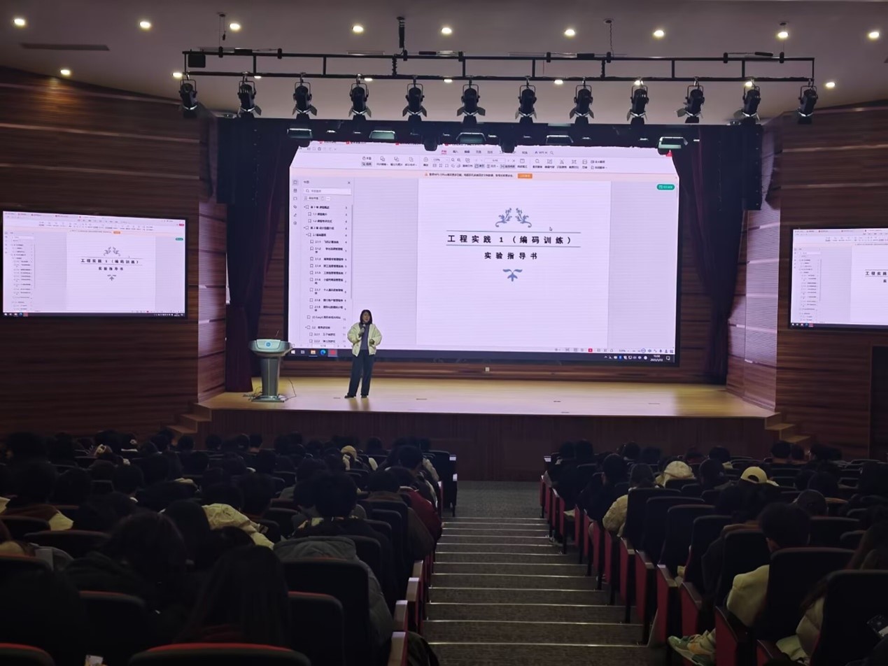 接下来,软件工程系主任李蕊为同学们介绍了下学期课程《工程实践1》的修读要求。李老师详细讲解了课程内容安排、学习目标及其对学生工程实践能力的培养要求。她强调,工程实践课程与之前学习的课程不同,不仅仅是理论知识的延伸,更是锻炼学生动手能力和创新思维的重要途径。李老师鼓励同学们在课程学习中积极参与项目实践,通过实际操作提高解决问题的能力。