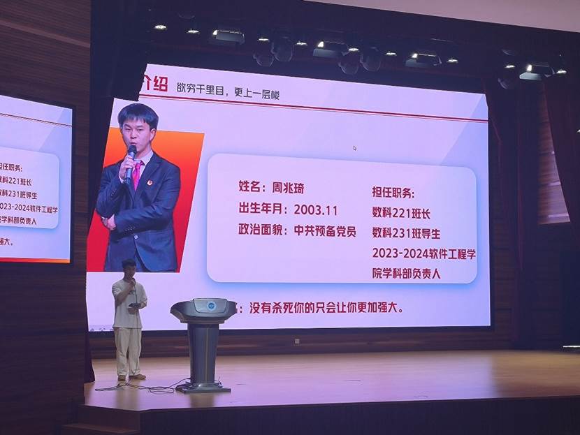 随着热烈掌声的响起,大会正式拉开帷幕。8 位来自软件工程学院的“青春榜样”依次登台,他们以亲身经历为蓝本,带来了一场场精彩绝伦的分享。有的榜样详细剖析高效学习方法,分享如何合理规划时间、提升学习效率,让同学们在知识海洋中畅游有方;有的通过生动的案例分析,深入解读“团队协作的艺术”,展示如何在团队中发挥优势、凝聚力量,共同攻克难题;有的讲述自己从实验室“小白”一步步成长为竞赛冠军的蜕变历程,激励同学们勇于挑战自我、突破极限;还有的用一个个温暖人心的志愿服务故事,传递“奉献与成长”的深刻感悟,让同学们明白付出与收获的真谛。同时,他们还贴心地为有考研或求职打算的同学提供了宝贵建议。每位榜样的分享都情真意切,既有实用的方法论指导,又有深刻的精神引领,现场同学全神贯注聆听,不时爆发出热烈掌声。
